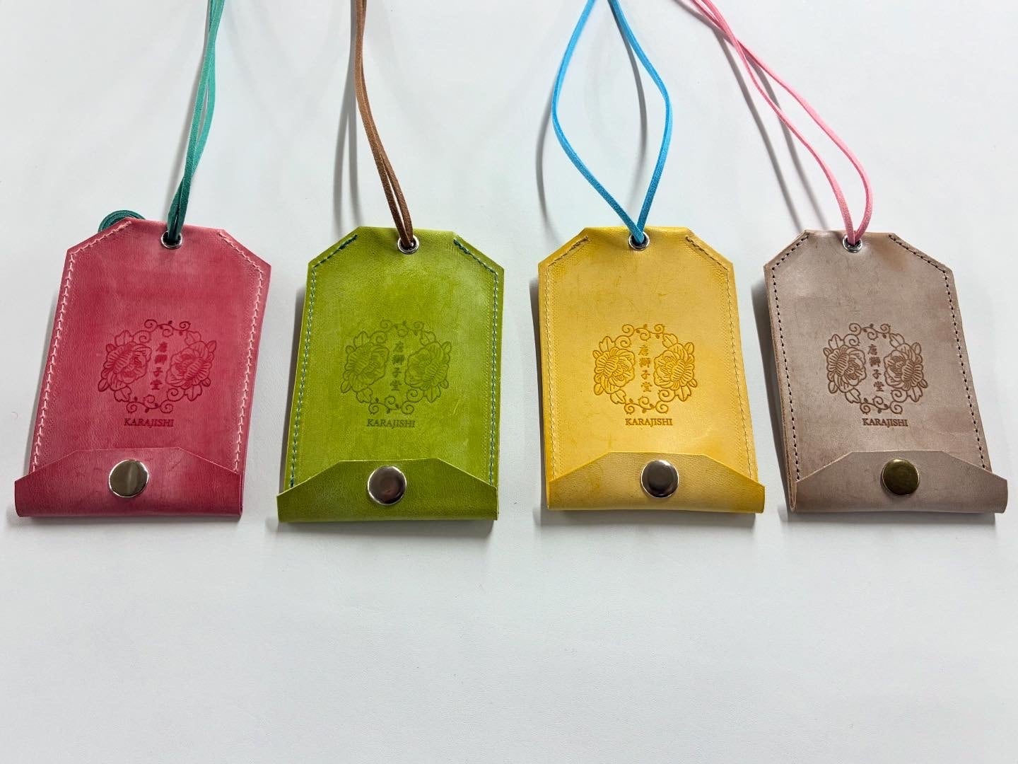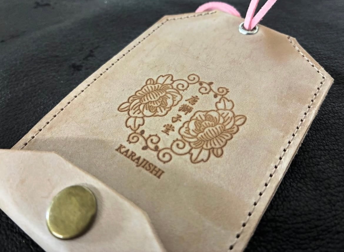 唐獅子堂の意匠を刻印し、上質で肌触りの良い牛革で仕立てています。